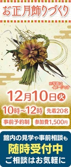 川崎で創業75年、全区に式場を展開し、地域に「安心」と「信頼」を届けるセレモニアグループ。『平安会館たま』では12月10日(火)に「お正月飾り」の手作り教室を開催する。