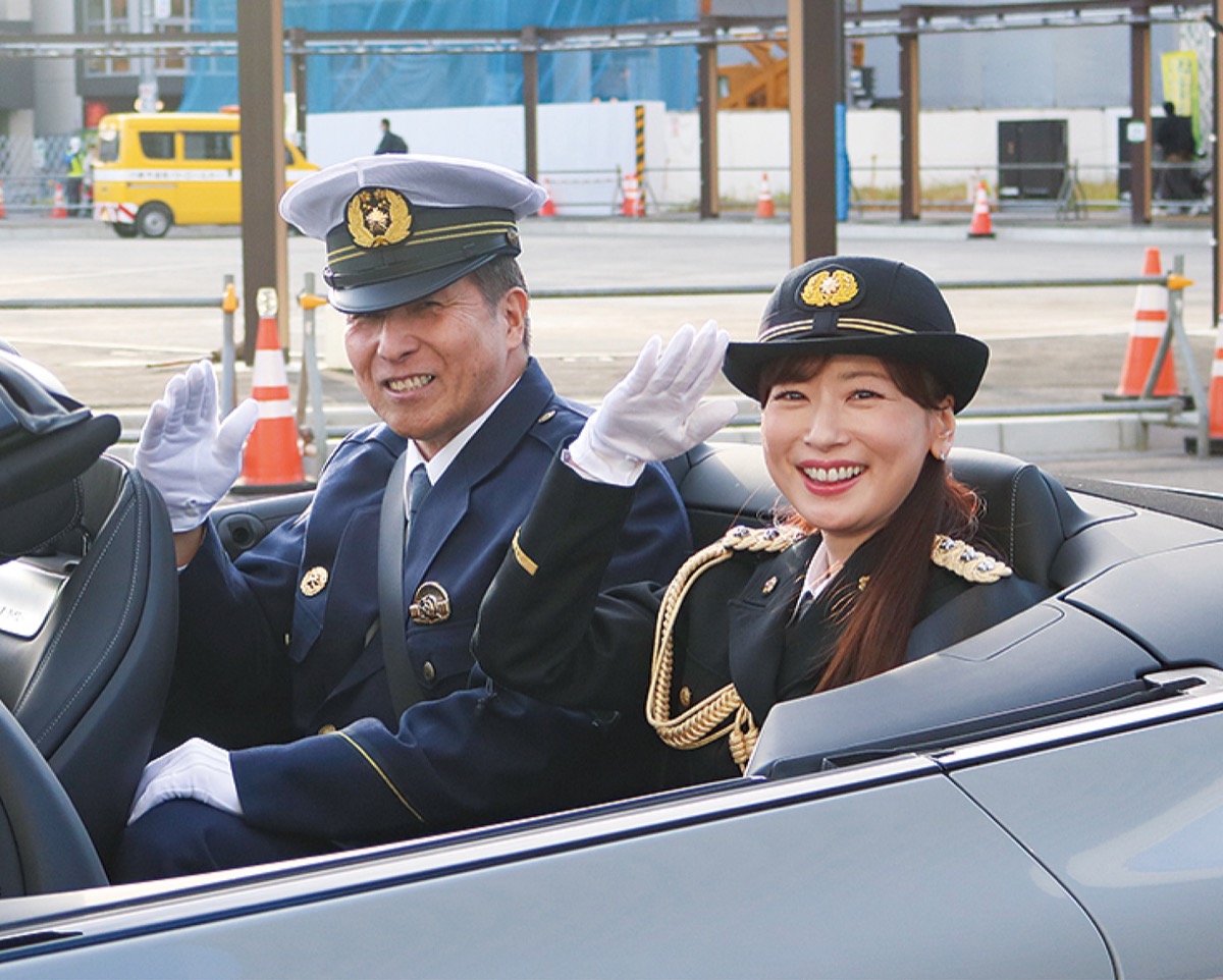 その後、菅署長とオープンカーに乗り、多摩区役所や向ヶ丘遊園駅、登戸駅周辺をパレード。多くの地域住民やファンが集まっていた。