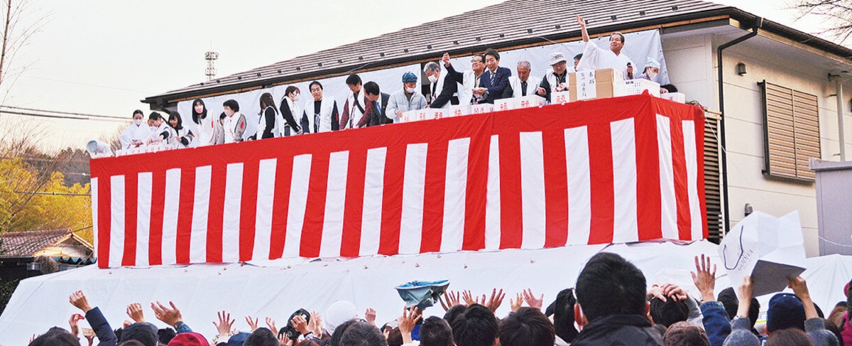 ▽菅薬師堂(菅北浦4の16の2)...菅薬師奉讃会主催/2月2日(日)午後3時から/本堂横の舞台に加え、年少者は境内の土俵も会場になる。役員の年男や町会、地域の有志らが豆やお菓子をまく。