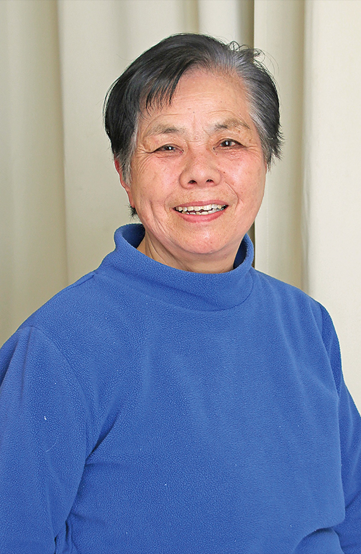 「昔はローラースケートを履いて移動したいぐらい忙しかったけれど今はゆったり働けている。仕事が楽しい」と微笑み、「動いているほうが楽。体力が続く限り仕事をしていたい」ときっぱり。一昨年には介護福祉士の資格も取得した。2時間程度の散歩と編み物が日課。何でも食べ、眠くなったら寝る穏やかな生活。一方で医療系のテレビ番組はドラマも含めほぼ欠かさず見るという。「見ないと今の医療についていけないから」