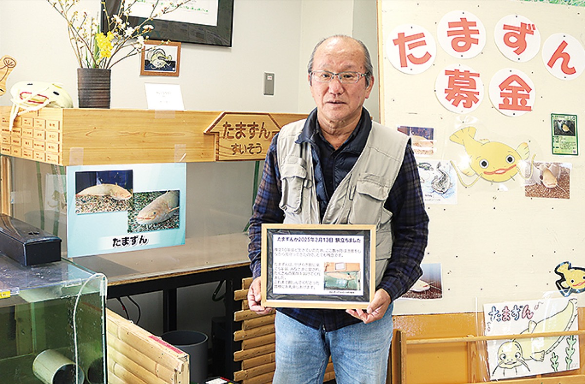 同館のメンバーが交代でえさやりや水槽の清掃を担ってきた。えさ代は、たまずんの缶バッジなどを渡して寄付を募る「たまずん募金」を活用した。現在は、はく製にして市民に見てもらうなど、今後のことを同館メンバーで話し合っている状況だという。