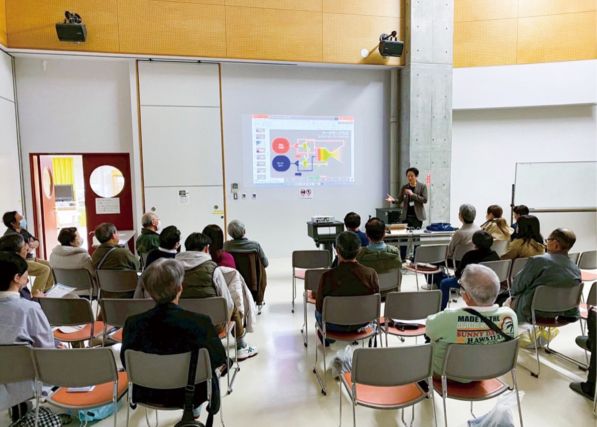 今回は国内外で活躍している宇宙工学の専門家が登壇し、「ロケットエンジンの基礎と未来」をテーマに講演。多くの民間企業が参入し、今後の期待が高まる分野の講義を小学生から高齢者まで約30人が聴講し、「町内で素晴らしい話が聞けて貴重な時間を過ごせた」などと感想を述べた。