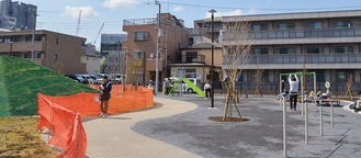 川崎市による登戸土地区画整理事業の一環として、整備が進められてきた登戸2号街区公園が3月31日、登戸区画整理事務所跡地に一部オープンした。広さは約2500平方メートルで、芝生養生エリアなどを除く園路、遊具などが使用できる。