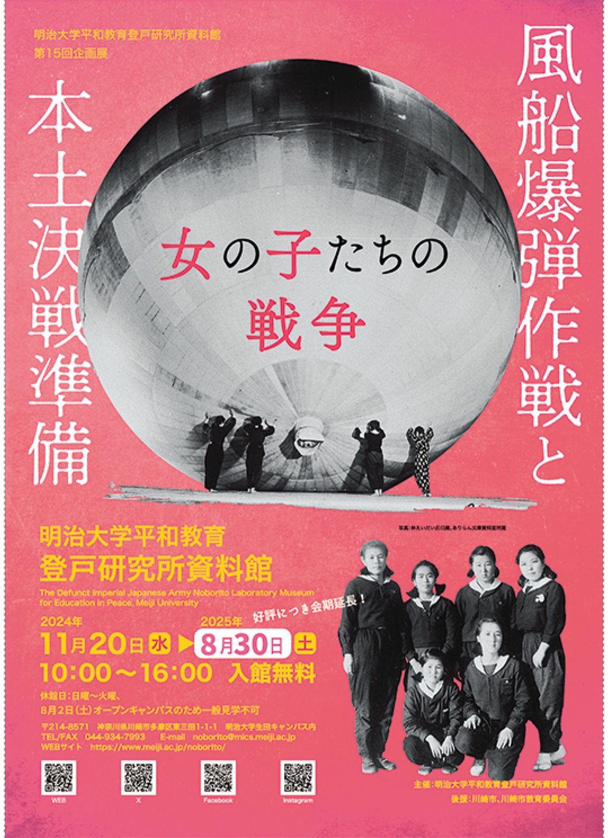 昨年11月20日に始まり、会期は半年間の予定だったが、市内外から来館者が絶えず外国人も増えるなど、予想外の反響が続いているという。昨年5月に発売された小林エリカさんの小説「女の子たち風船爆弾をつくる」(文藝春秋)が毎日出版文化賞を受賞するなど広く注目を集めたことで、作品で描かれた「風船爆弾」への関心も高まったようだ。