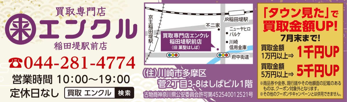 JR稲田堤駅から徒歩2分の場所に買取専門店エンクルがオープンした。古物事業を運営する大手企業で執行役員として、幅広い業務を統括してきた長谷川勇介さんが代表を務めている。