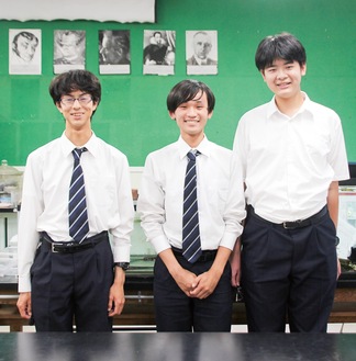 科学部は1年から3年まで16人が在籍。日々、生物の生息調査や光合成など自分が関心のある研究テーマに沿って探究活動を行っている。1年生で唯一渡米に参加する稲垣颯大さんは「入学前の学校見学で部活を見て楽しそうだった」と語る。