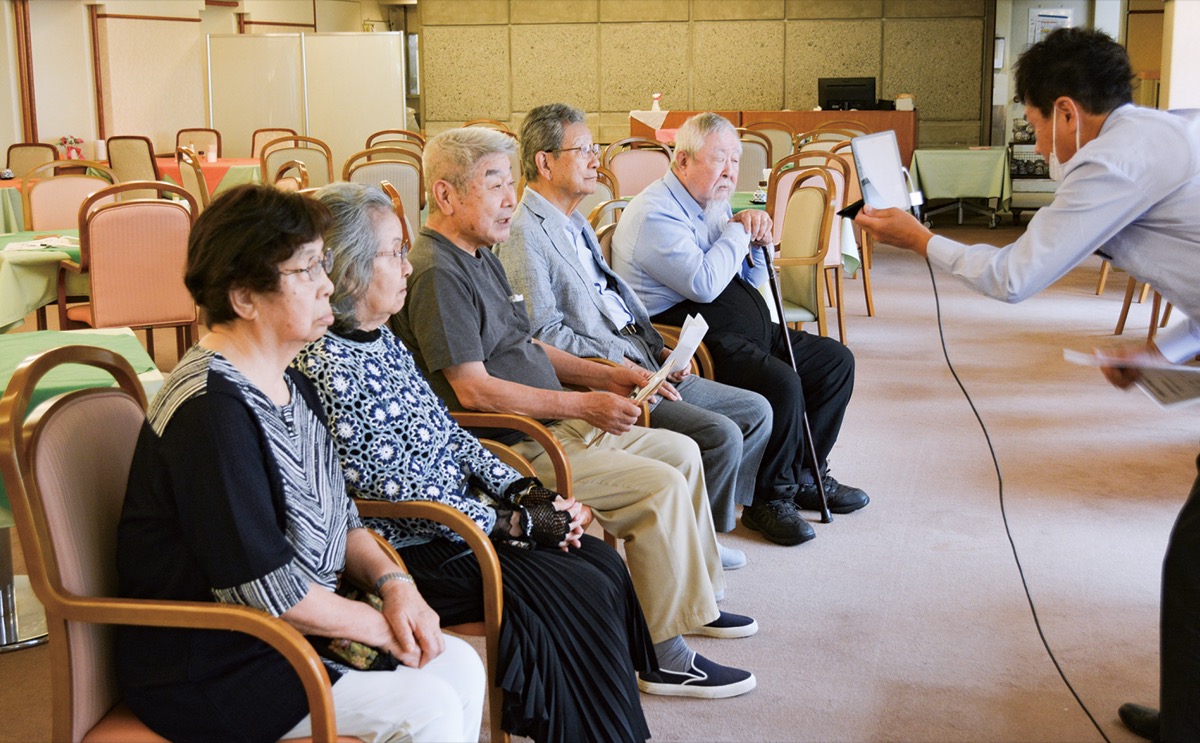 授業では、同ホームの概要などが説明された後、小学生からの質問に入居者らが答えた。「一日の予定は」との質問に「週5日の水泳のほか、畑作業、散歩などをしている」「年を取ってよかったことは」との質問には、「70歳まで働いていたので、今は自由になる時間がたくさんあること」などと語った。児童からは「皆さんが元気そうで驚いた」との感想が相次いでいた。