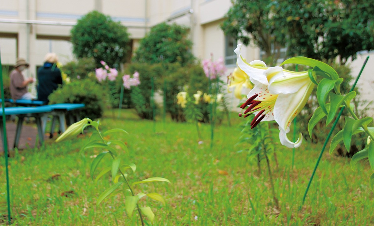 PTAやOB会の山百合会、生徒、教職員が秋頃に球根を植え付け。消毒などの手入れはPTAが月1回程度のペースで行っているという。