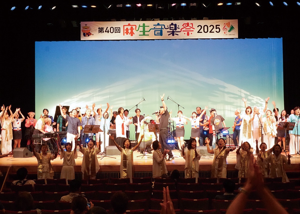 今年で40回目となった「麻生音楽祭」は7月12日に最終日を迎え、麻生市民館ホールで「ポピュラーミュージックショー」が催された。6月からひと月にわたり続いた音の祭典は、この日の出演者全員がステージに上がって合唱する「Specialバンド」でフィナーレを迎えた。