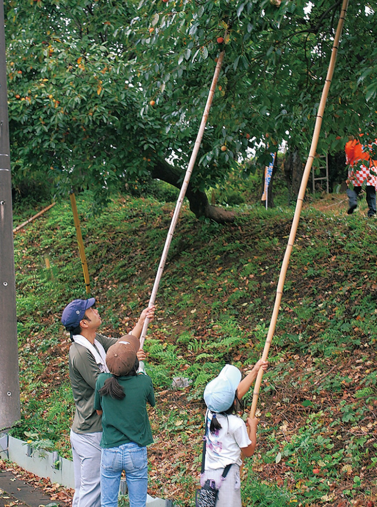 麻生区観光協会と麻生区役所が主催する同イベント。昔ながらの道具「ばっぱさみ」(もぎとり棒)を使った柿もぎのほか、芋掘りも行う。