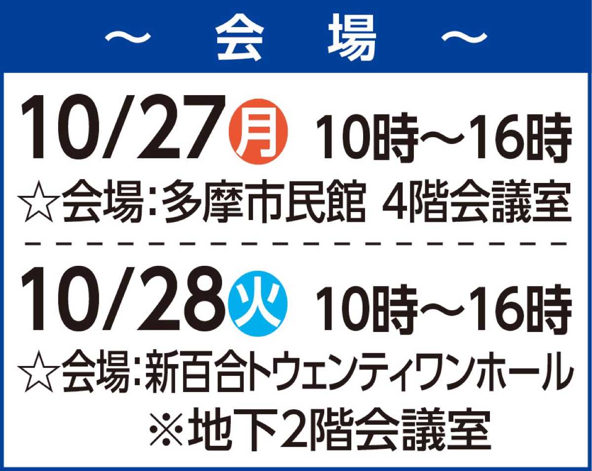 10月27日(月)多摩市民館、28日(火)新百合ヶ丘で