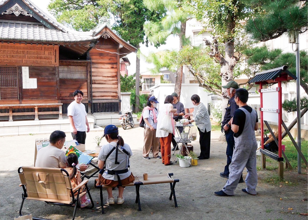 第1回は8月23日に開催された。「地域に開かれた『縁側』がコンセプト。気軽に立ち寄って、まちの人が地域に関わってもらえるような場になれば」とメンバーの松本恭子さん(41)。その思いの通り散歩中にふらっと訪れる人や子連れ、高齢者など数十人の参加があったという。9月には2回目を実施。今後、原則として毎月第4日曜日に開催する方向で、次回は10月26日(日)を予定している。午前10時から午後2時。コーヒーは無料で提供するが、メンバーらが手弁当で用意するため応援金を募る。雨天時は中止。(問)同神社【電話】070・4805・3971