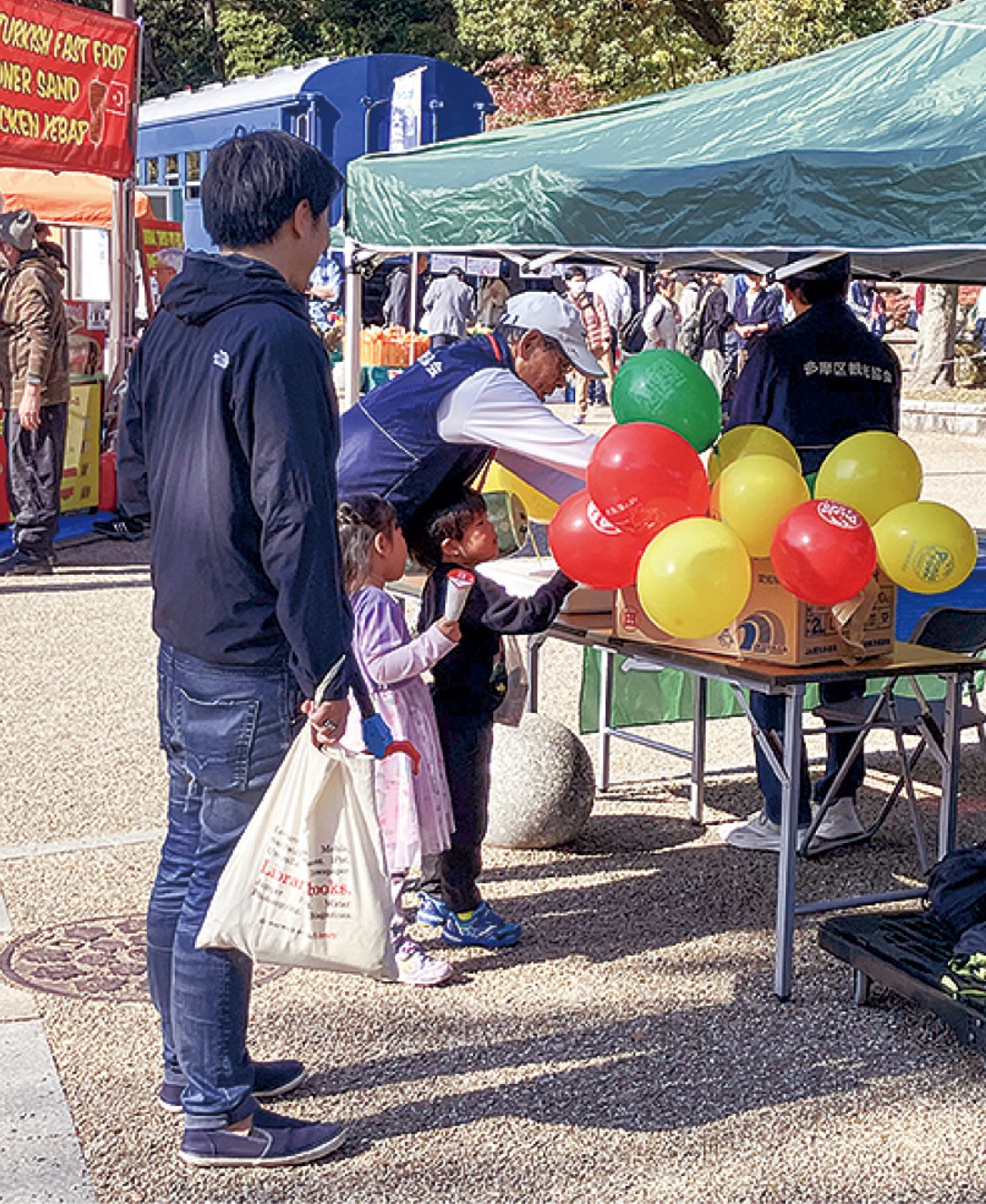 多摩区の秋のグルメイベント第10回「食の祭典」(同実行委員会主催)が11月15日と16日、生田緑地中央広場で開かれ、秋晴れの下、来場者は地元の食を堪能しながらイベントを楽しんだ(写真は15日の様子)。