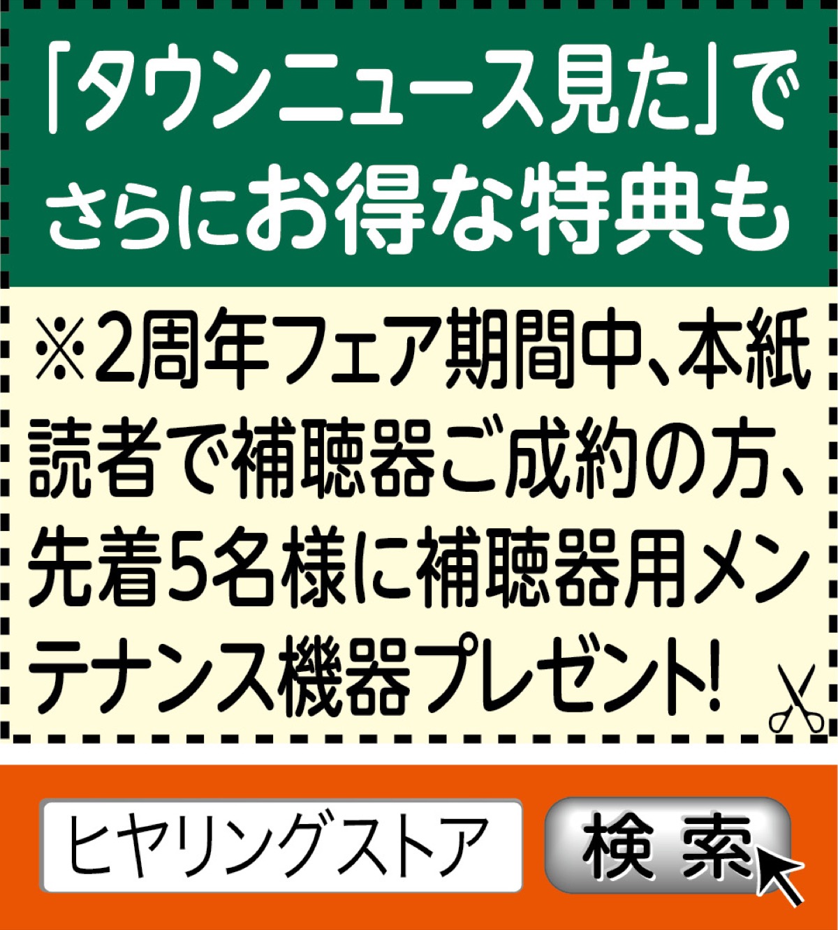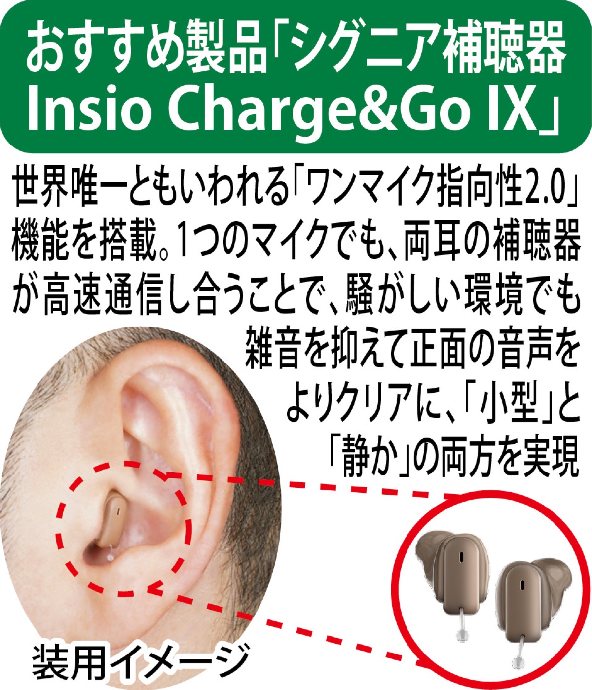 いま、同店おすすめのシグニア補聴器の新製品=写真左下=も値引対象。騒がしい環境の中での会話を鮮明にし、目の前の人の声に集中できるよう雑音を抑えてくれる高性能タイプで、充実の保証やアフターフォローも人気の秘訣。認定補聴器技能者の資格を持つ藤多詩織店長は「最新の高性能機種でお出かけや会話をより楽しんで頂けると思います」と話す。さらに「本紙を見た」とスタッフに伝え補聴器を成約された先着5人にメンテナンス機器(約1万円相当)の進呈も。フェア期間中は混雑が予想されるため「必ずご来店予約を」と呼び掛けている。