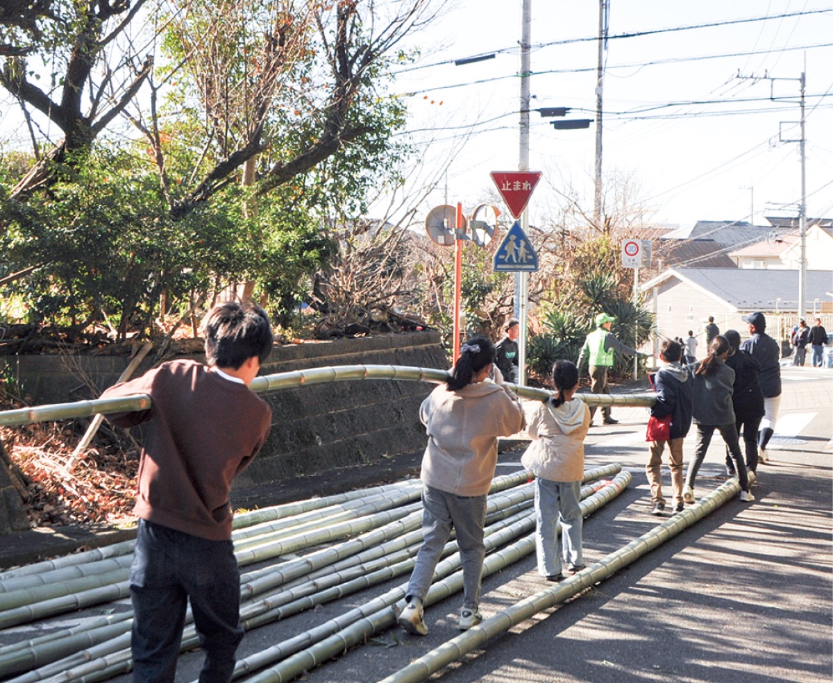 麻生区の金程富士見会、金程町会、向原町会の3町会が輪番で主催し、地域一丸となって行うどんど焼き準備が1月10日、市立金程小学校(麻生区)校庭で行われた。3町会と地元有志の会「金生会」、同校の4〜6年生児童、教員、PTA、保護者、県立麻生高校の野球部員ら約140人が参加した。