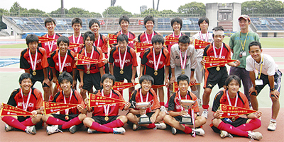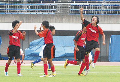 神奈川県中学校総合体育大会サッカー決勝戦が2日、平塚競技場で行われ宮内中学校サッカー部(京免徹監督)が藤ヶ岡中を破り初優勝を飾った。