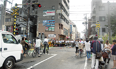 向河原駅前の駐輪場職員は「朝は10分から15分ぐらい踏切が開かないことがあり、歩行者や自動車で混雑することが多い。その状況で踏切が開いても歩行者が車道に溢れ、自動車が通れずすぐに閉まってしまうことがある。拡幅されれば改善されるのでは」と話していた。