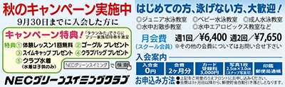 地域密着を掲げる同クラブでは、特典満載の秋のキャンペーンを今月末まで実施中。詳細は問合せを。