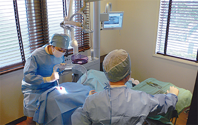 手術は専用の個室で行います。この部屋には手術用空気清浄ユニットが設置されており、スイッチ一つで「清浄度クラス10000」の清潔な手術室を作り出します。消毒・滅菌を徹底しています。基本的にはディスポ(使い捨て)の医療器具を使用しており、感染予防も徹底しています。