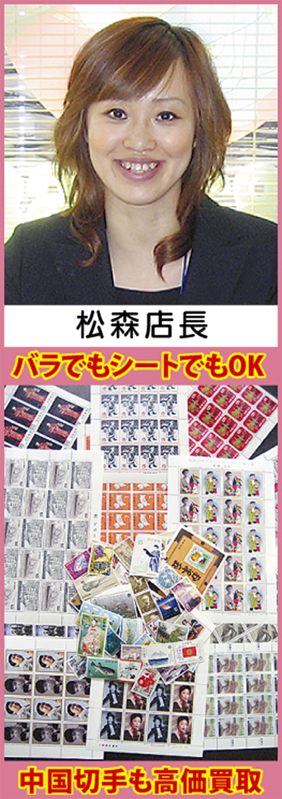 さらに、切手(中国切手)・古銭・テレカ・金券・時計・勲章・刀剣は買取強化中で高額査定が期待できる。「中国切手の専門鑑定士が査定します。意外なお宝切手が見つかるかもしれません」と松森店長。