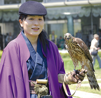 諏訪流17代鷹師の田籠善次郎氏らによる鷹狩りの実演には多くの観客が集まり、鷹が大空を飛ぶ姿には大きな拍手と歓声が送られた。実演後には鷹師が観客の眼前で鷹を披露し、質疑応答をする場面も見られた。