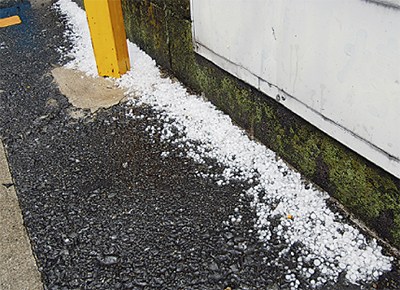 関東全域で天候が不安定となった18日、中原区でも午後12時30分頃から突然の豪雨とともに、強烈な”ひょう”が降った。新城駅周辺では、まるで小石のようなひょうが約5分間続き、歩行者らは屋根がある近くの建物などに逃げ込んだ。また、プラスチック製のサンルーフが破損するなどの被害も出ていた。