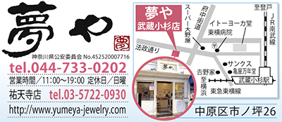 武蔵小杉の法政通りにある「夢や」は、金・プラチナ買い取り、定石リフォーム・修理などあらゆるメニューに応えてくれるジュエリーの専門店。