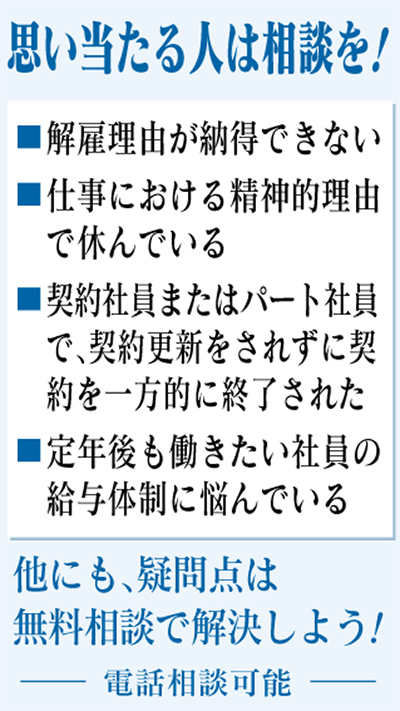 一方、会社側では従業員の権利侵害に気づかないまま、雇用をしてしまっているケースもあるという。従業員が不当を訴え、それが認められると、会社にとっては社会的な信頼面でも大きな損失になりかねない。「双方が幸せになる環境づくりは、お互いの権利を知り、客観的な事実に基づく判断が必要です。当事務所では従業員側、会社側それぞれからのご相談に応じています。なぜ、と思ったら気軽にご相談ください」。今なら1回目の相談は無料。電話相談も可。