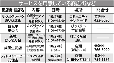 こうした取組みを行うのは、ブレーメン通り、新丸子東栄会、新城はってん会の3商店街など5カ所。いずれも、10月27日に行われる川崎市長選挙で、投票所か期日前投票場で申請すればもらえる「投票証明書」を提示すれば、景品進呈などのサービスが受けられるというもの。