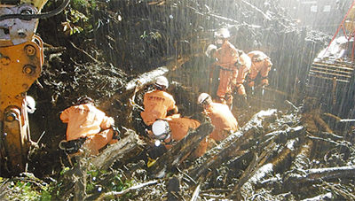 中原消防署の職員が、台風26号で大きな被害を受けた伊豆大島に10月19日から22日まで派遣され、行方不明者の捜索活動を行った。
