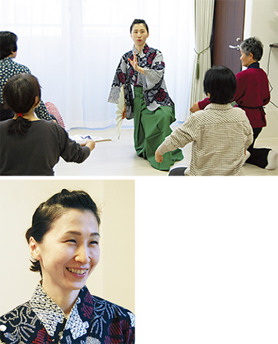 講師は、和泉元彌さんの姉で女性狂言師の十世三宅藤九郎さん。同グループホームを運営する社会福祉法人ばなな会の取材がきっかけで、市内の系列施設で教室を始めて今年で4年目になる。年8回の内容はいずれも人気で、最終回には発表会も行う。藤九郎さんは「狂言には人間の生きる意味を肯定的に捉える演目が多い。力強い発声も含め受講生に伝えていきたい」と思いを語る。入居者の多くが認知症という症状ゆえに記憶に留めることに難しい部分もあるという。しかし「94歳の女性がお稽古した謡をふと口ずさんでいる姿を見ると嬉しくなる」と藤九郎さん。ばなな会でも「みんな楽しみに待っている。地元の方にも参加してもらうことで、グループホームへの理解も浸透させられたら」と話す。同会では一般受講生を若干名募集中。(問)【電話】044・433・4651