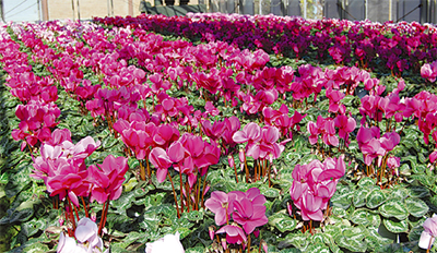 「お歳暮やプレゼントに」と毎年好評の中原産シクラメン。区内農家でも11月中旬より出荷が始まった。