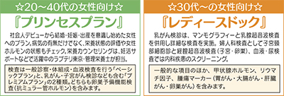 申込み・問合せは、下記より。尚、女性検診科(医師・技師・看護師とも全て女性で構成)は、年齢に応じたプランを設け、随時受付中だ(左記プラン参照)。