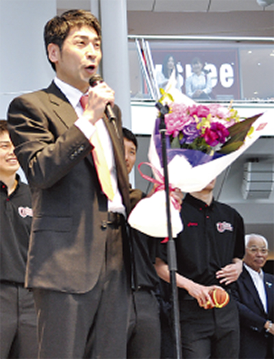 優勝から5日後の29日、ラゾーナ川崎で優勝報告会が行われ、ファンや東芝の社員ら約180人が来場。挨拶にたった北卓也ヘッドコーチは「優勝できたのは皆さんの応援のおかげ。若いメンバーなので練習に磨きをかけ常勝チームを作っていきたい」と話した。