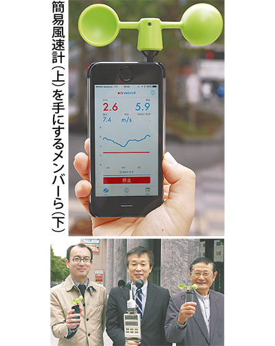 同研究チームでは、観測への協力者を募集中。対象は小杉周辺在住で定期観測が可能な人。無料で簡易風速計を貸し出すが、iPhone専用のためユーザーが対象。定員20人。観測に対する条件は特に設けず、自由な日時に、風速記録や場所、その時の印象や事象等を記録する。観測希望や詳細は、研究チーム(【メール】kaze-map@excite.co.jp)まで。