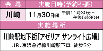 当日は同会の司法書士さんが相続や遺言、成年後見、労働トラブル、借金、会社や土地・家屋の問題など業務範囲内の様々な悩みに応じてくれる。会場ではFMヨコハマで放送中の「司法書士のスマイル法YOU☆」番組オリジナルクリアファイルをもれなく進呈。業務範囲等詳細は左記へ。