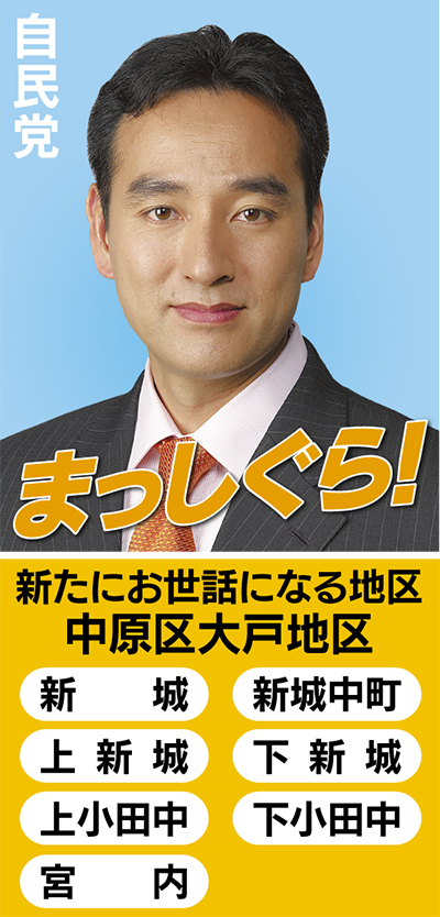 選挙区割りの変更に伴い、高津区・宮前区に加え新たに「中原区の大戸地区」でもお世話になることになりました、衆議院議員やまぎわ大志郎です。