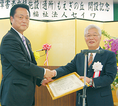 同施設を運営する社会福祉法人セイワの石野厚理事長は「当法人が開設50年を迎える今年、要望が多かった施設ができ嬉しい。地域の皆さまを始め携わって頂いた方々に感謝申し上げたい」と話した。また、設計・施工を手掛けた(株)内藤ハウス横浜支店に、石野理事長から感謝状が贈られた。