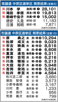10議席に16人の候補が立ち激戦となった市議選。当選確定の発表が日をまたぎ、中原区は市内で最ももつれた選挙区となった。