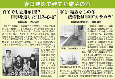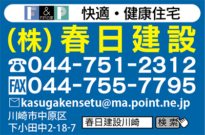 川崎市でこの工法を引き受け、年2〜3棟を丁寧に施工し続けるのが『春日建設』。こだわりの家づくりと、施工後も全施主と交流を図っているなど、その信頼の厚さはホームページを見れば一目瞭然だ。