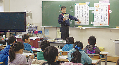3年1組の36人の児童が参加。国語授業の一環として同社の「楽しい年がじょうを作ろう!」というテキストを使用し、来年の年賀状を作成した。担任の丹野紗貴教諭は「専門家の詳しい知識に触れて学ぶ機会を」と考え、同授業を申し込んだという。