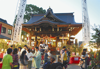 正月は一年の平穏無事を祈願する「新年ご祈祷」を元日深夜0時より受け付け。恒例、神社の社宝・勝海舟自筆の大幟の公開や手作り「長寿甘酒」の無料配布(正月三が日限定・無くなり次第終了)も行われる。