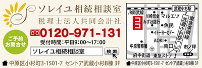 武蔵小杉駅から徒歩4分、セントア武蔵小杉B棟3階にある『ソレイユ相続相談室』は、相続専門の税理士事務所として「相続税申告」「遺言書の作成」「相続税の土地評価」などを中心に行う税理士法人だ。