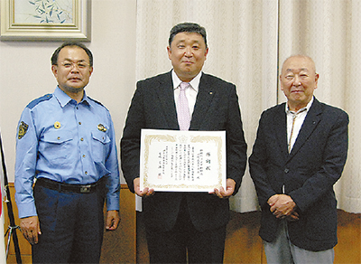 事件は4月、同店の裏口に近い私道で、男性が顔面から出血しているのが発見された。警察は強盗やひき逃げ事件を視野に周辺で聞き込み捜査を行い、防犯カメラのある同店に協力を依頼。男性が意識を失い転倒する姿が映像にあったため、捜査の早期解明に繋がった。感謝状を受け取った同店の朝山浩さんは「現場を見て強盗やひき逃げかと思ったので、警察の捜査に協力できてよかった」と話すと、岩滿署長は「ビデオ映像が決め手でその日のうちに事案解明に至った。感謝したい」と話した。