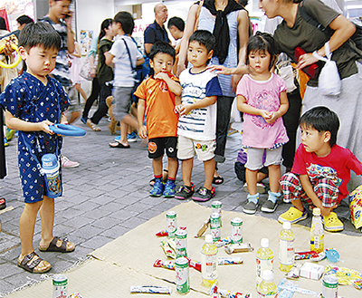 新城商店街連合会が主催する夏まつり「にぎどん夜店市」が8月27、28日に行われ、連日多くの人で賑わいをみせた。輪なげやヨーヨーすくい、焼きそばや綿あめなど、地元の各商店による遊びと飲食などの模擬店が数多く登場。浴衣姿の学生や親子連れらが通りを埋め、夏休み最後の週末を楽しんでいた=写真。
