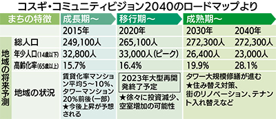 大規模再開発に伴い、急速に都市化が進む武蔵小杉駅周辺地域。中原区は同地域のコミュニティ形成における将来的な課題に対し、地域一体となって取り組むための指針となる「コスギ・コミュニティビジョン2040」をこのほど公表した。