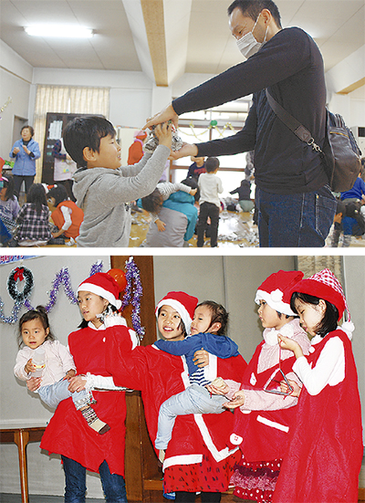 上新城子ども会が主催する「クリスマス会」が12月10日、安養寺で行われた。