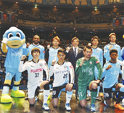 サッカーJ1・川崎フロンターレは22日、2017シーズンに向けた新体制発表会見を昭和音楽大学で開いた。新たに監督に就任した鬼木達氏(42)や元日本代表MF家長昭博選手(30)らが登場し、約1200人のサポーターを前にタイトルへの思いなどを語った。