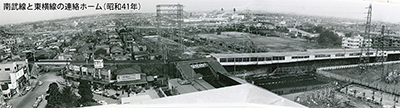 そんな急激に変貌する街を後世に残そうと、今昔をまとめた著書「中原街道と武蔵小杉―写真で綴る周辺の今昔―」を出版しているのが羽田猛さん(82)だ。上の写真は、羽田さんが、昭和41年に小杉会館(現・小杉ビルディング)の屋上から武蔵小杉駅周辺を撮影したもの。左右に伸びるのが東横線で、中心手前から左奥へ延びるのが南武線。左下が今の南武線北口バスロータリーの辺りで、写真の右下は中原図書館が入るタワーマンションの位置となる。左側の上下に走るのは当時まだ開通していなかった南武沿線道路だ。
