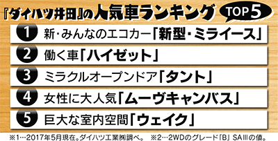 また、介護や介助、それを支える人に寄り添った「車いす移動車」や「昇降シート車」など、軽自動車の福祉車両を充実させているのもダイハツの魅力。自家用車としてだけではなく、デイサービスや高齢者施設など介護事業者の送迎車としても愛用されているという。『ダイハツ井田』でも福祉車両を展示中で、見学・相談は随時受付中だ。